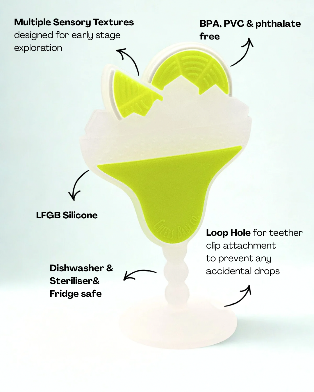A sassy silicone teether with a cute, playful silhouette and the Cheers Baby Co. signature three-bubble stem for an easy, confident grip. Soft, durable and built for everyday adventures, it’s a bold little essential made for big personalities.